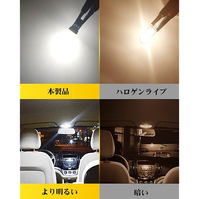 【全方向照射&超拡散角360°】このT10 ledは天面LED部には最新型ランプシェードを採用、さらに高発光効率の3020SMD LEDチップに天面に配置することにより、さらに優れた拡散性と明るさを両立、360°全方位照射できます。純正ハロゲンと比較して、最大で約3倍の明るさUPが可能になります。