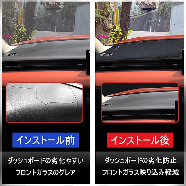 【フロントガラス映り込み軽減】ダッシュボードはいつも視界に入る場所です。ダッシュマットを装着することで視覚的に満足のいくドレスアップ。フロントガラスへの光の反射も防げるので、視界をクリアに確保し、運転に集中できると思います。