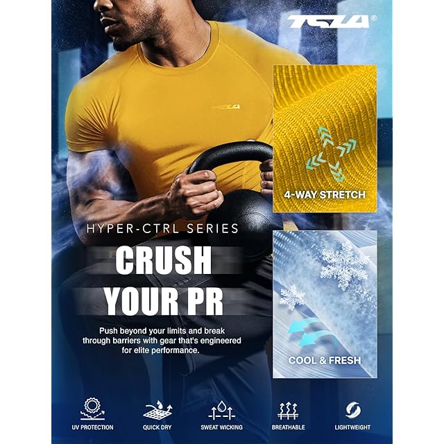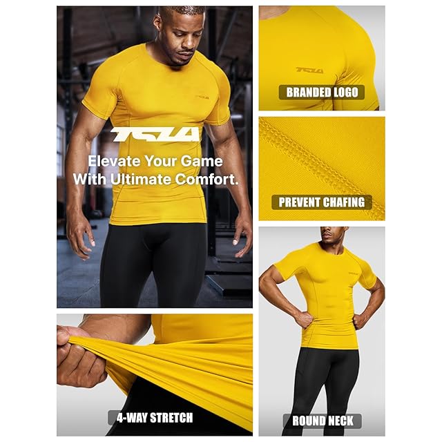 [テスラ] コンプレッションウェア メンズ 半袖 スポーツインナー [UVカット・吸汗速乾] コンプレッションシャツ コンプレッションウェア ランニング トレーニング フィットネス スポーツ Tシャツ ベースレイヤー 野球 サッカー アンダーシャツ 加圧シャツ MUB23-YLW_4XL