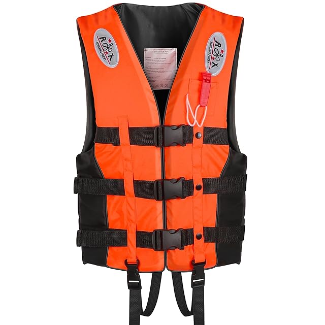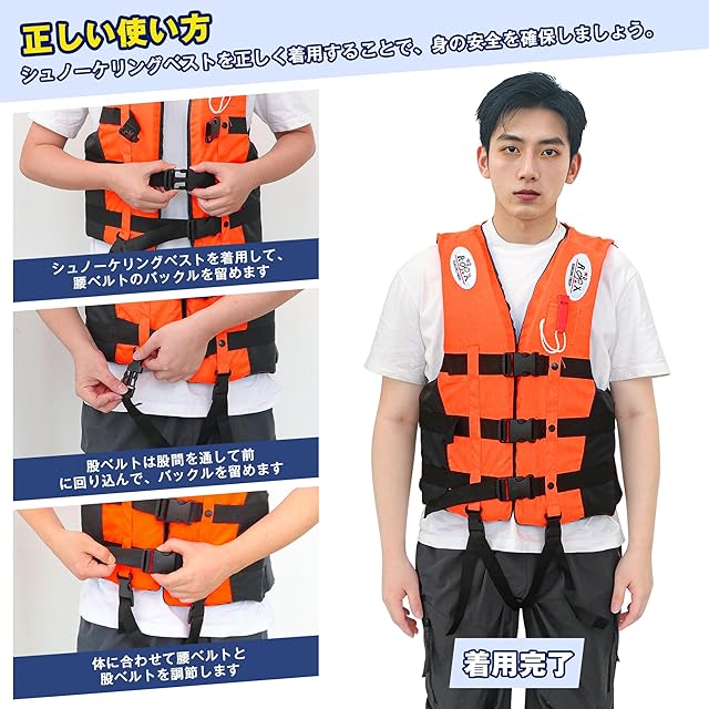 EMSIC ライフジャケット シュノーケリング用 CE認証 水泳補助ベスト フローティングベスト 大人用 子供用 男女兼用 強い浮力 救命胴衣 災害対策用 防災 緊急用 釣り サーフィン 漂流 カヤック 海上作業 (オレンジ, S)