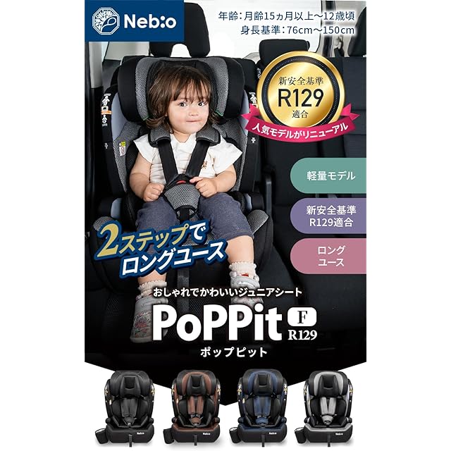 【R129対応 15ヶ月から12歳 ロングユース 保温保冷ドリンクホルダー付き】ジュニアシート 長く使える 洗える シートベルト固定 取付簡単 3way チャイルドシート ポップピットF-R129 ネビオ Nebio