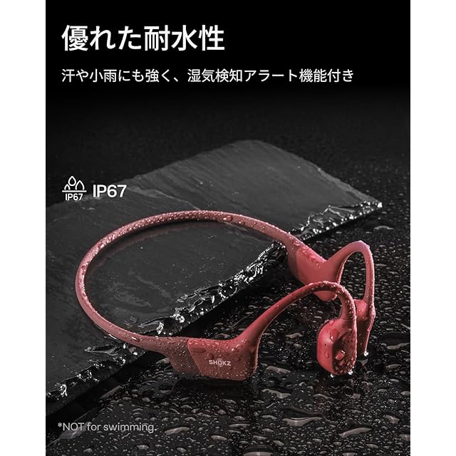 Shokz (ショックス) OpenRun 骨伝導イヤホン ワイヤレス Bluetooth5.1 オープンイヤーヘッドホン 耳を塞がない DSPノイズキャンセリング・マイク 自動ペアリングヘッドフォン マイク付き 技適認証済み ランニング・スポーツイヤフォン IP67防塵防水 急速充電 8時間再生 レッド