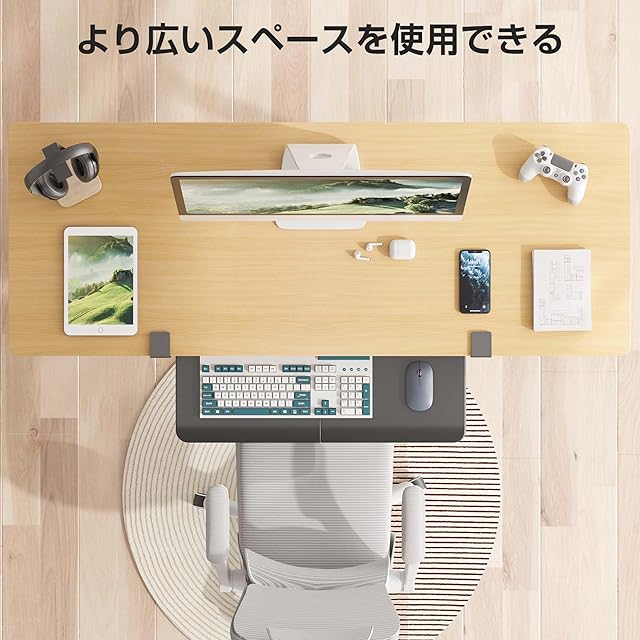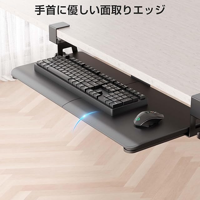 【省スペース&多用途】この65cm (クランプを含むと75.5cm) x 30cmのデスク下キーボードトレイは、キーボード、マウス、その他の小さなアクセサリーをデスクトップの下に収納し、作業スペースを増やします。デスク拡張用後付けで乱雑さのない作業環境を提供しながら、貴重なデスクスペースを節約するのに役立ちます。