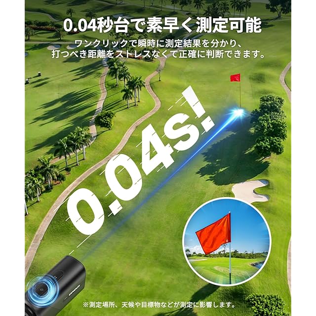 【測定速度がアップ>>>最速0.04s!】前機種の0.06秒と比較してアルゴリズムがアップグレードされ、最速0.04秒の測定速度を実現します。そして3~1093yd(1000m)までの測定ができ、200yd以内に小数点の表示も可能です。わずか±1ヤードしかずれない高い計測精度で、特に3~100ydまでの測定誤差が±0.5ヤード以内に抑えることができます。高速度と高精度の両立を実現しています。