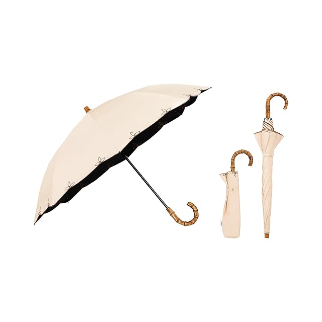 Wpc. 最強の日傘 UVO(ウーボ)折りたたみ傘/2段 刺繍スカラップ ベージュ《遮光率&UVカット率100%/UPF50+/遮熱/晴雨兼用》50cm レディース 長傘としても使える 2way バンブー おしゃれ UVO2F-009