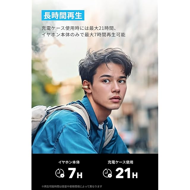 装着しやすい柔軟なブリッジによる、安定したフィット感: 付属品のイヤーカフキャップを使用すれば、さらに安定感が増し、身体を動かしたり汗をかいたりした時でも安心。