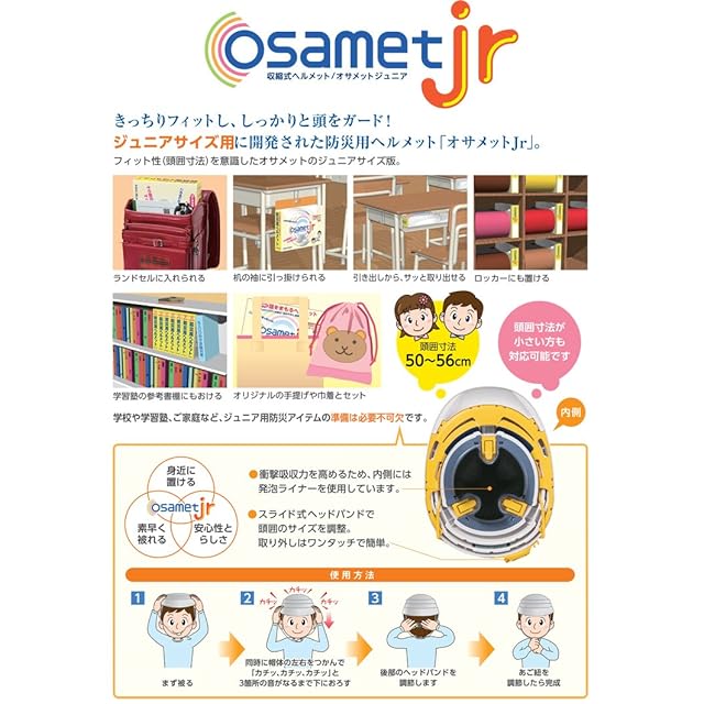折りたたみ防災用ヘルメット オサメット(反射材付き) osamet (子ども用 ブルー) 防災防犯ダイレクト