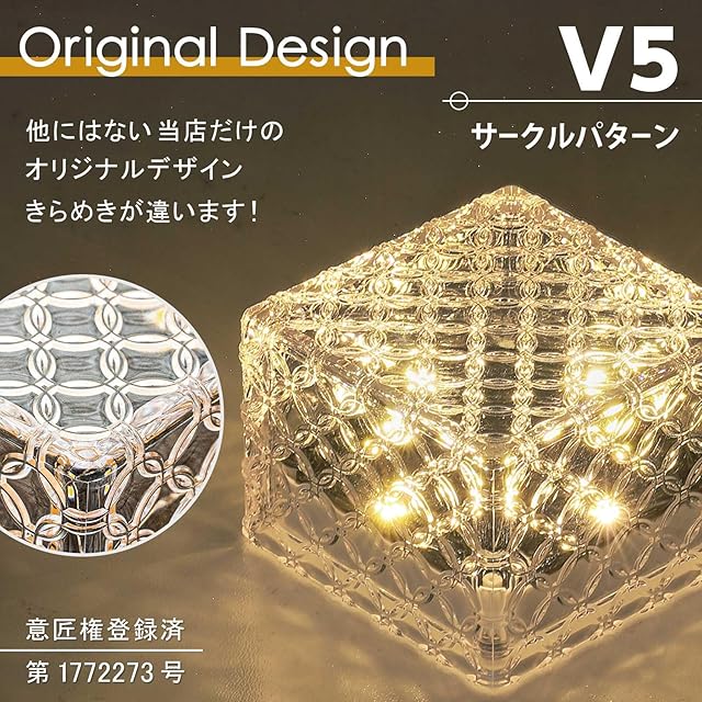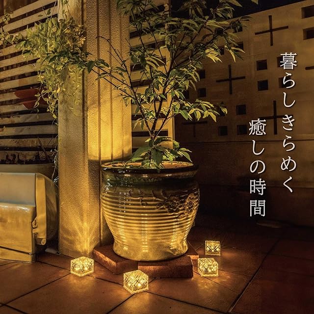【選ばれる理由】 従来のキューブ型ガーデンライトよりも性能UP [ パネルサイズ:43×39mm → 充電効率UP ] [充電池容量:800mAh → 連続点灯時間UP] [LEDチップ:5050×8個 → 明るさUP] [当店だけのオリジナルデザイン:意匠権申請済] 従来よりも明るくて長時間点灯、キラキラ反射するオリジナルデザインが綺麗でかわいいと大評判。
