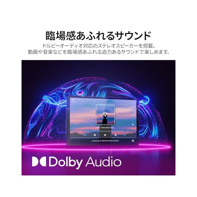 【臨場感あふれるサウンド】ドルビーオーディオ対応のステレオスピーカーを搭載。動画や音楽などを臨場感あふれる迫力あるサウンドで楽しめます。