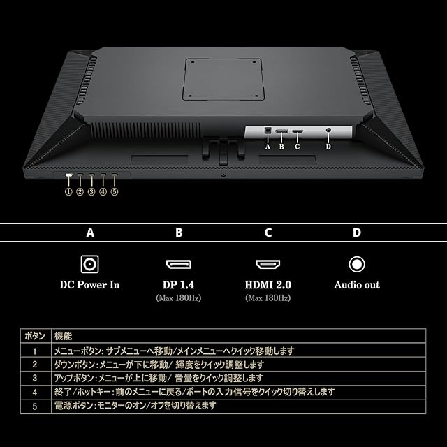 【多様な接続端子】最新の接続規格に対応!HDMI2.0(1980*1080@180Hz) とDP1.4(1980*1080@180Hz)で、180Hz ゲーミングモニターがスムーズな映像を体験可能。さらに、ヘッドホン端子も完備し、臨場感あふれるサウンドを楽しめます。