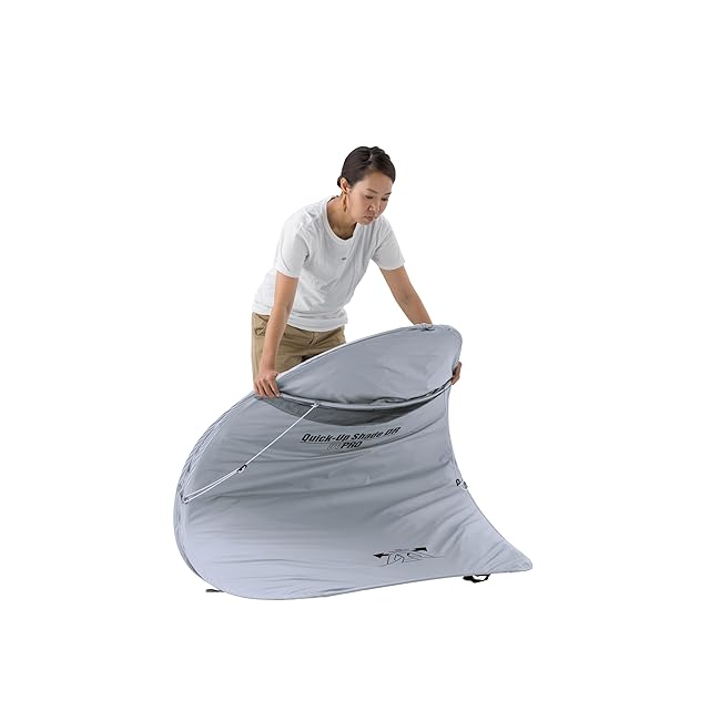 【簡単設営】 パッと開くだけで簡単に設営できるポップアップ式サンシェードです。 ワイヤー内蔵のため、ポール(骨組み)を組み立てる手間が無く、撤収も慣れれば簡単です。軽量で持ち運びやすいのもうれしいポイントです。