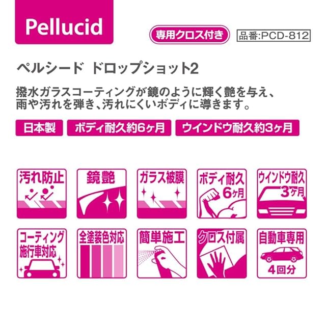 ペルシード(Pellucid) 洗車ケミカル 撥水ガラスコーティング剤 ドロップショット2 210ml PCD-812 コーティング効果約6ヶ月持続