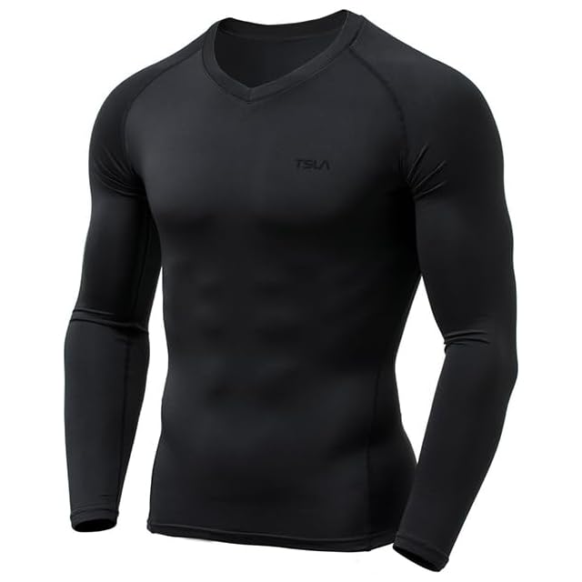 [テスラ] コンプレッションウェア メンズ vネック [UVカット・吸汗速乾] コンプレッションシャツ スポーツインナー ランニング トレーニング フィットネス スポーツ Tシャツ ベースレイヤー アンダー 加圧シャツ tm-MUV01-JPA_3XL