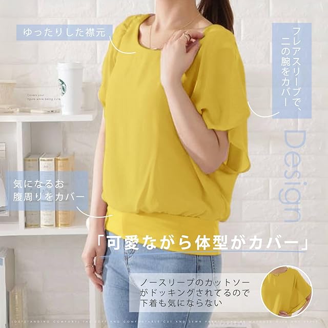 【大人可愛いドルマン袖 】広いドルマンスリーブで気になる二の腕をカバー、細見え効果抜群!腕周りはゆっくり着れるので少しスッキリ見えます。裏地付きてサイドも安心。タンクトップは薄いのに透けなく 涼しくて快適!腰周りもタンクトップ部分も伸びるから着やすいし、汗ばんだ体でも脱ぎやすい。ボリューム満点なデザインで気持ちもふんわり上向きに、ゆったりとしたシルエットでおしゃれながら体型カバー。フェミニンデテールを凝縮させた1枚、華奢に見せることも狙える優秀な夏服です。