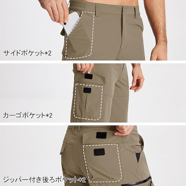 【多機能】速乾性、通気性、撥水性、ストレッチ性、軽量性、耐摩耗性を持っているハーフパンツ、暑い日に快適に保ち、動きやすく、アウトドアスポーツ向けに特別に設計された多機能ショートパンツです