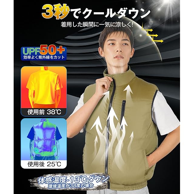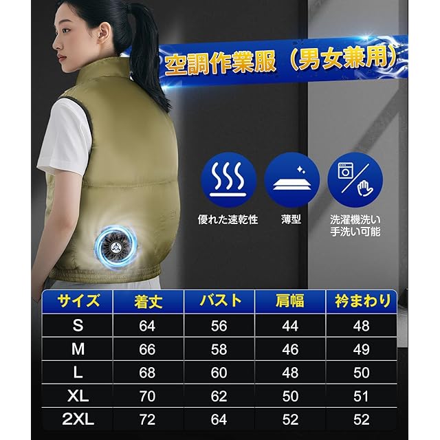 [Sumeriy] 空調作業服 ベスト 30000mAh大容量バッテリー付属 超高出力 ファン付き作業服 ファンバッテリーセット 薄型 超軽量 4段階調節 日本製高性能モーター 9枚ファン 強力風量 UVカット USB給電式 暑さ対策 熱中症対策 吸汗速乾 工事現場 アウトドア スポーツ 運動 登山対応 (XL, カーキ)