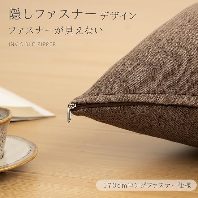 「製品詳細」60cm×60cmのクッションカバー2枚セット(中身は別売りです)。このサイズは、抱き枕や座布団、背もたれクッションとして多用途に使え、どんな家具とも相性が良く、お部屋に自然に溶け込みます。