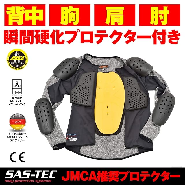 【付属プロテクター】SAS-TEC製:胸(CEレベル1) ひじ(CEレベル2) 肩(CEレベル2) 背中(CEレベル1)