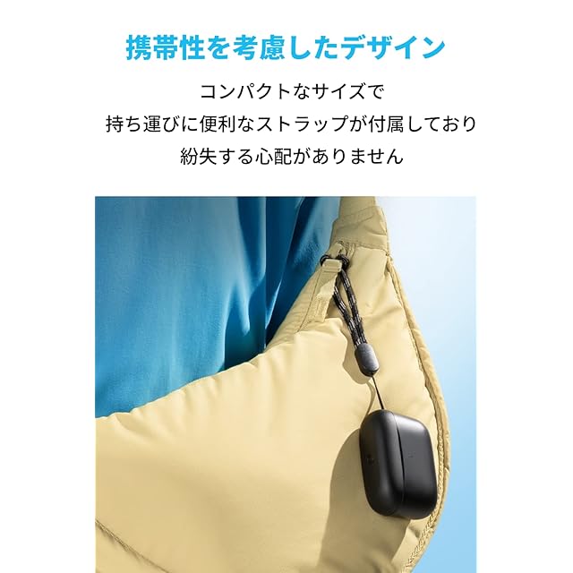 持ち運びに便利なミニマルなデザイン:ケースを含めて、わずか41.3gで小さく軽量です。ストラップが付属しており、アクセサリーのようにバッグに付けることも可能で持ち運びに最適です。