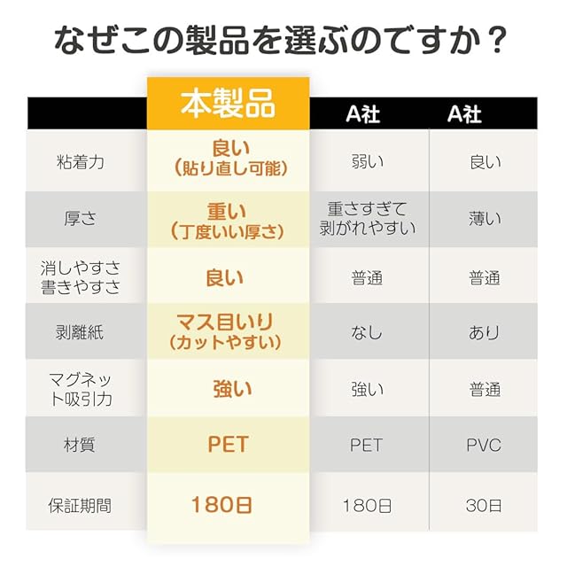 【書きやすく拭きやすい】ホワイトボード紙は耐水性に優れたPET材質を採用し、表面が滑らかで、書き心地が滑らかである。また、ホワイトボードに書いた後は、長時間使っても跡が残らず消しやすくなります。繰り返し書くことができて、とても便利です!