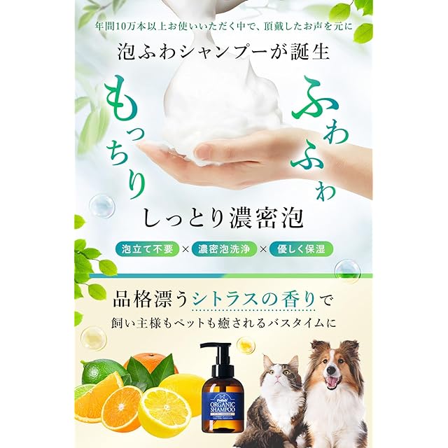【動物看護師×トリミングサロンと共同開発】 ペット用 オーガニックシャンプー 犬用兼猫用 シャンプー 低刺激 無添加 国産 (500ml 泡タイプ)