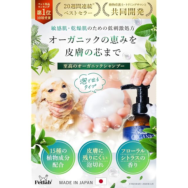 ✅【動物看護師×トリミングサロンとの共同開発】PETLABのオーガニックシャンプーは良く使用されている数十種類のシャンプーを試した上で、ワンちゃん・ネコちゃんの皮膚被毛の健康を保つのに有効な成分を配合しつつ、飼い主様にも快適にご使用いただけるよう、香りや泡立ちなど調整いたしました。 ワンちゃんの皮膚被毛をより健康的に保つための講座動画も同封しておりますので、是非ご覧ください♪