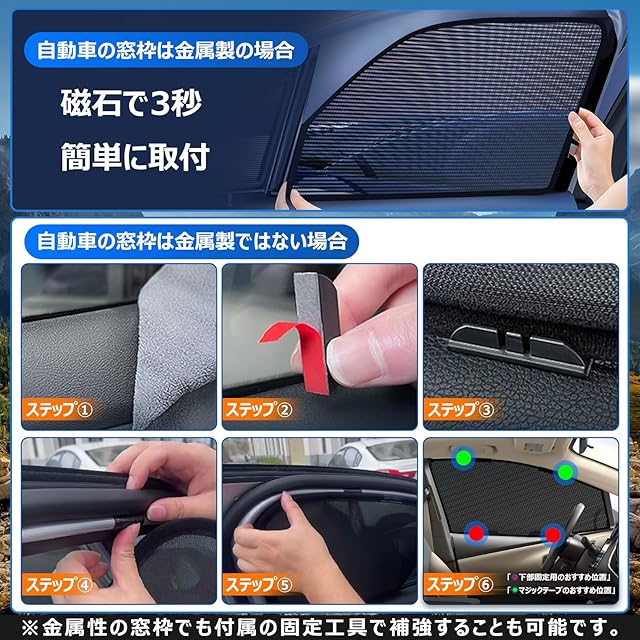 【車種専用設計】自動車のフロントガラスの大きさ・形状は、その車種ごとにバラバラです。従来品は車種専用のデザインではなくて、窓の形にフィットしません、隙間のあるし、プライバシーを守りません、装着した後、倒れる場合もあります。本社の製品は車種専用デザインで、隙間はありませんし、装着完了した後、倒れません。ご注意:※車種専用サイズですが、工人は一つずつ生産なので、まったく隙間ないことではなく、多少の隙間やゆがみがあることはご承知おきください。※商品はガラスの隙間に挿すことではなく、窓枠の上に置いてください、窓枠に向かって設計サイズですが、ガラスに挿しましたら小さくか大きくなります!車種構造によって、一部の車種はマグネット式でも付属品の使用が必要になります、ご了承ください