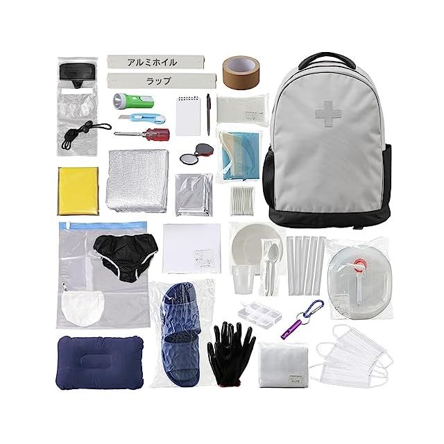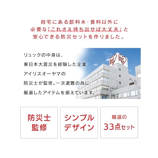 アイリスオーヤマ 【防災士監修】 防災グッズ 防災セット 防災リュック 33点 一次避難用 グレー BRS-33