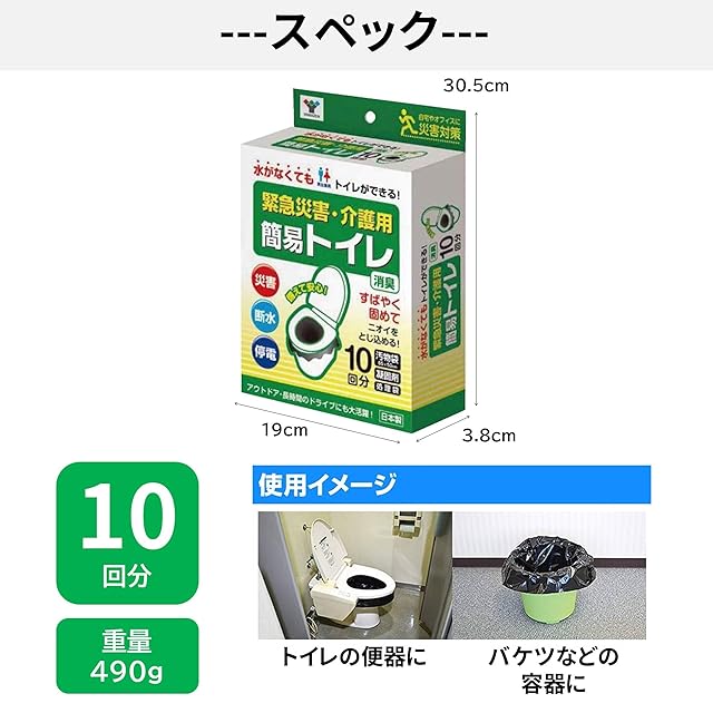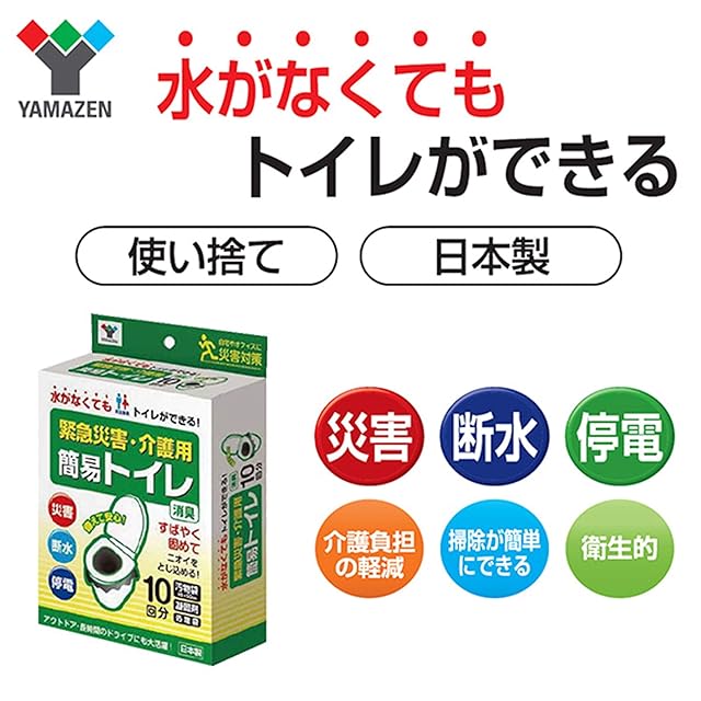 山善(YAMAZEN) 簡易トイレ 【日本製】 10回分 (凝固剤/汚物袋/処理袋) 携帯トイレ 災害用トイレ 防災 断水 介護 非常用 簡易トイレ用ウエルポリマー12g YKT-10