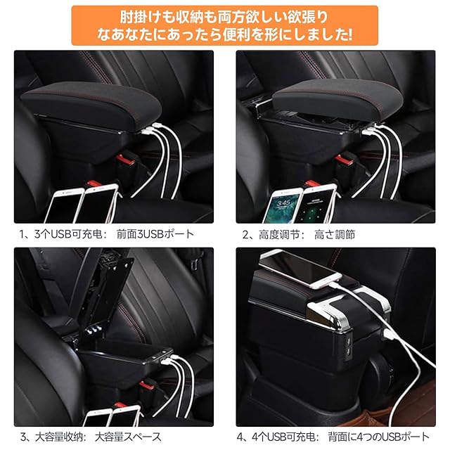 Chaoxinyizu アームレスト コンソールボックス 車用収納ボックス 汎用 車肘置き 肘掛け 多機能 汎用 USBポート付き 内装 長時間 運転 アームレスト