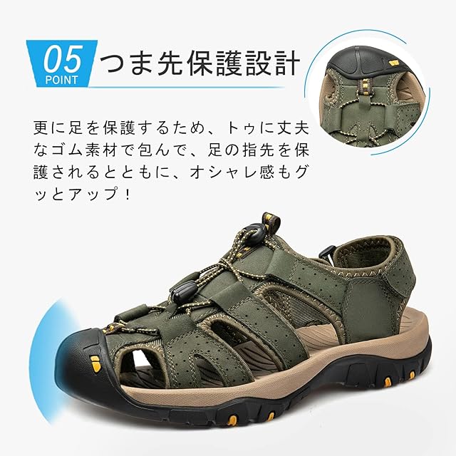 【つま先保護設計】アウトソールの素材がつま先部分にも覆われて保護性や耐久性もアップする。スポーツ、登山やハイキングなどのアウトドアアクティブに足先をしっかり守る。アウトドア、運動、普段着に最適です。