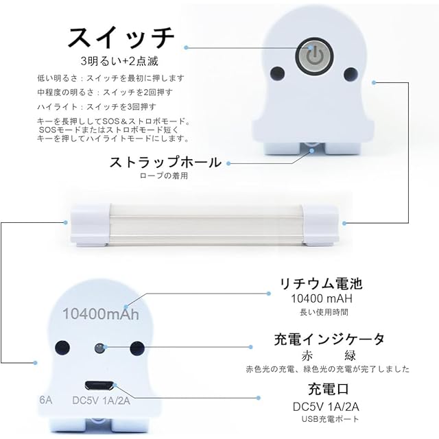 【大容量電池&長時間使用】:内蔵10400mAHリチウムイオン電池、高速充電機能、5V / 1A機器の8時間充電、5V / 2A機器の使用は4時間充電、40時間の連続に使用できます。様々な場面で簡単に対応で、災害による停電用/夜間作業等/緊急用・非常用として、いるなな場面で活躍します。