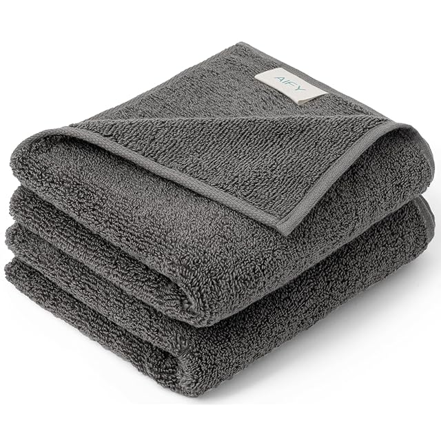 AIFY フェイスタオル 2枚セット 厚手 軽量 速乾 耐久性 ふわふわ 綿 毛落ちしにくい 抗菌 防臭 瞬間吸水 ホテル仕様 無地 髪に優しい 肌触りが良い 赤ちゃん エステ サロン ギフト 34×80cm グレー