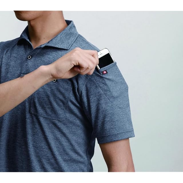 ●ドライな着用感が持続する吸汗速乾加工。●袖マルチポケット(左)