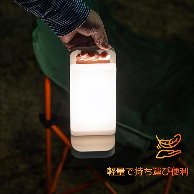 「様々なシーンで大活躍」ソーラーランタン本体は617gで、持ち運びや引っ掛けにも便利なハンドルが付いています。キャンプのテント内やサイトの灯りだけでなく、自宅でのベッドサイドで、授乳ライトや読書タイム、夜の足元灯、リラックスタイムにも活躍します。さらに、IPX4防水仕様&耐久性に優れた素材で、いつでも利用シーンに寄り添います。