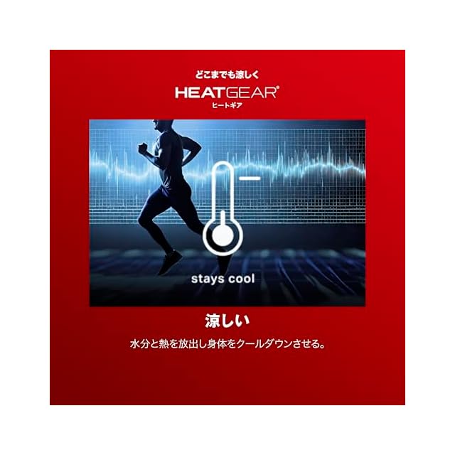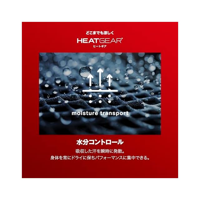 HEATGEAR ARMOUR(ヒートギアアーマー):吸汗速乾性と伸縮性に優れたファブリックにより、酷暑時でも涼しく、身体をドライで快適に保つ。
