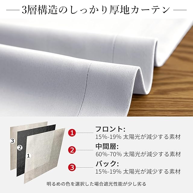 【プライバシーを守る】室内の光を外に漏れにくくする効果があるだけではなく、夜に部屋の明かりを付けている時でも外から人影が見えづらく、プライバシーを守ることができます。女性の一人暮らしでもこのカーテンなら安心感を得られる。