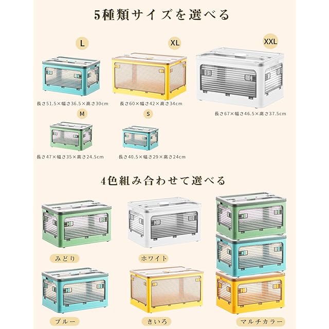 【5面開閉式×大容量収納】 「衣類/おもちゃ/布団収納に最適」 5面開閉式収納ボックスはどこからでも開けれるので詰める順番を考えずに、ポイポイ入れれるのが便利です。しかも大容量だから衣類やおもちゃ、布団まで色んな物がたっぷり収納できます。ボックスの天面に重い物も入れても、前、後、左、右から取り出せる可能です。一方向からしか取り出せない入れる伝統の収納ケースに比べて、使用頻度の低いものを取り出すのが不便になる心配はもうありません。こんな収納ボックスは本当に宝物です。