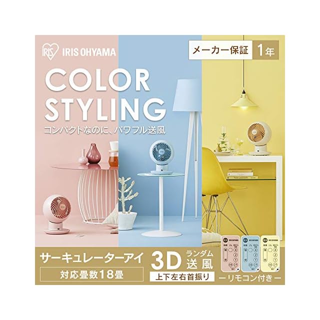 アイリスオーヤマ サーキュレーター 扇風機 18畳 上下左右首振り リモコン付 空気循環 省エネ 節電 卓上 パワフル送風 コンパクト 静音 一人暮らし 部屋干し PCF-SC15TP-A ブルー