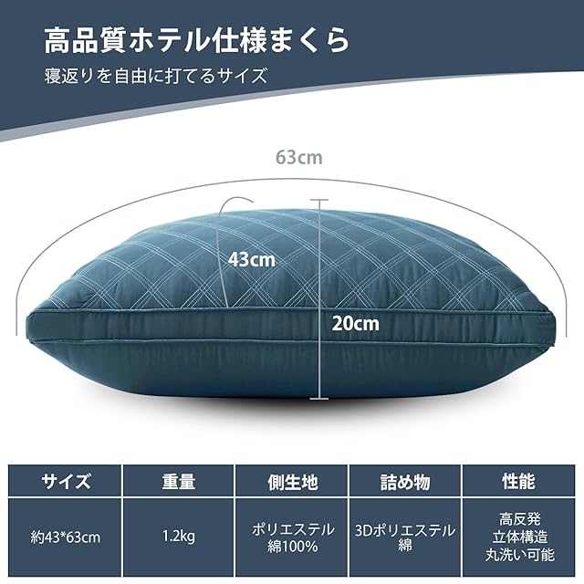 【高反発素材-復元力を持ち】厳選した高弾力の3Dポリエステル素材をボリュームたっぷりに詰め込み、ふっくらとした弾力を持つ同時にふんわり包み込まれる寝心地を実現します。適当な弾力で、頭部をしっかりサポートし、横向き寝・仰向け寝・うつ伏せ寝、お好きな寝姿でぐっすり眠れます。