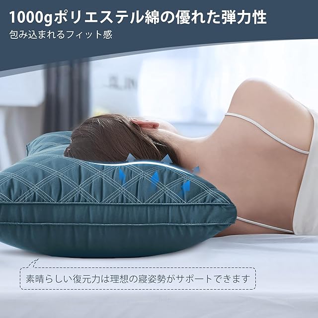【高反発-復元力を持ち】1000gの3Dポリエステル素材をボリュームたっぷりに詰め込み、羽毛相当の柔らかさを持つ同時にふっくらとした復元力を実現します。寝ている間、首の位置を自然な状態に保ちます。ゆっくりと沈み込み、頭の形に優しくぴったりフィットします。どのような寝返りをうっても頭や首を安定させてくれます。横向き寝・仰向け寝・うつ伏せ寝、お好きな寝姿でぐっすり眠れます。