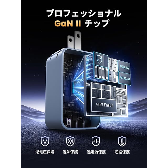 【多重な安全保護機能】知能検知機能により、接続されたデバイスに合わせて自動的に出力を判別してパワーの調整を行う。耐火PC素材を使用し、過電流、過電圧、過熱、短絡などをしっかり防ぎ、急速かつ安全な充電を実現(PSEなど電気安全に関する認証を取済み) .