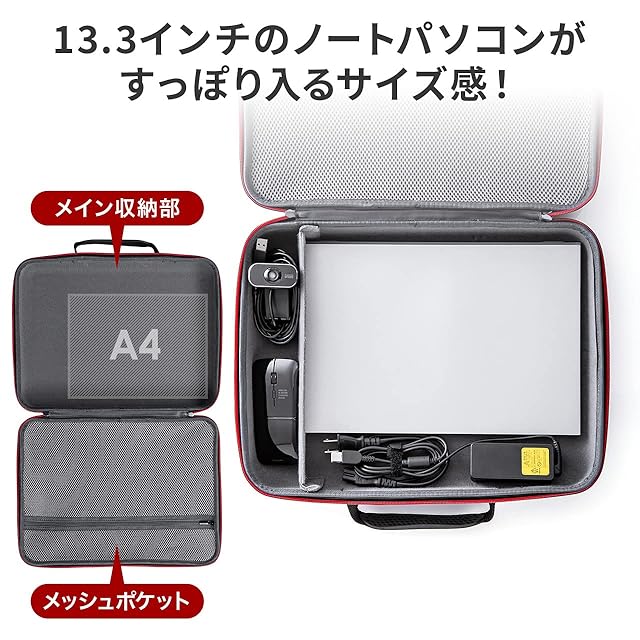 サンワダイレクト セミハードケース 13.3型PC対応 間仕切り付き 軽量 720g XLサイズ 200-BAGIN028BK
