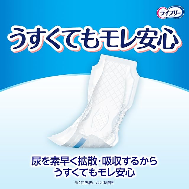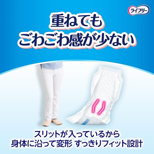 うすさ約1/2※1だから、パンツ1枚感覚。パンツと重ねてもごわごわしない紙パンツ専用尿とりパッド ※1 ライフリー尿とりパッド女性用2回吸収との比較です。