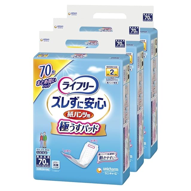 ライフリー パンツ用尿とりパッド ズレずに安心うす型紙パンツ専用 2回吸収 210枚 大人用おむつ 紙パンツ専用パッド(70枚×3) 【ケース品】