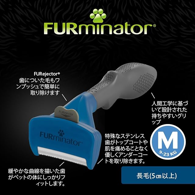 ファーミネーター 中型犬 M 長毛種用 ペット ブラシ 獣医師監修 ヘアボール(毛球症)対策 肌に優しくアンダーコート除去 ボタンを押して抜け毛が簡単に取れる グルーミングブラシ スキンケア 熱中症対策