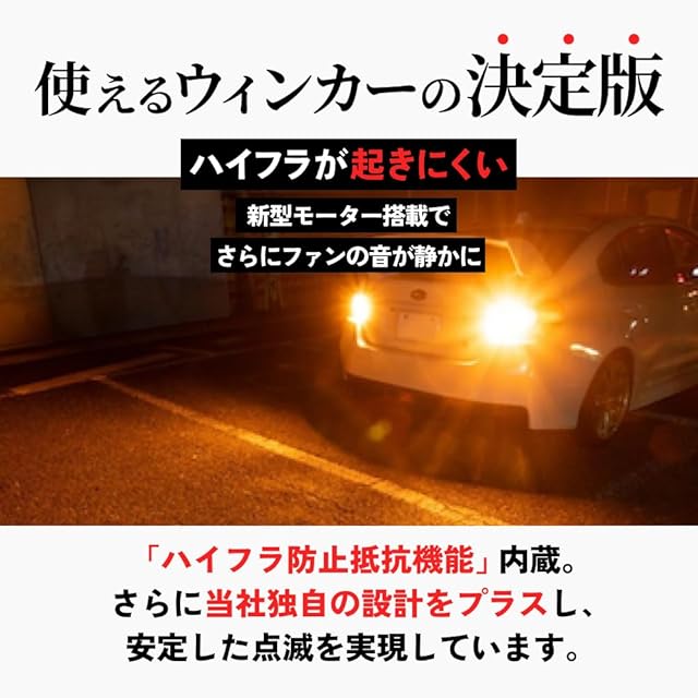 【ハイフラ対策に配慮した安定構造と静音性能】 本体に抵抗機能を内蔵し、多くの車種で安定した点滅を実現。新設計モーターにより、作動時の異音も大幅に軽減されています。