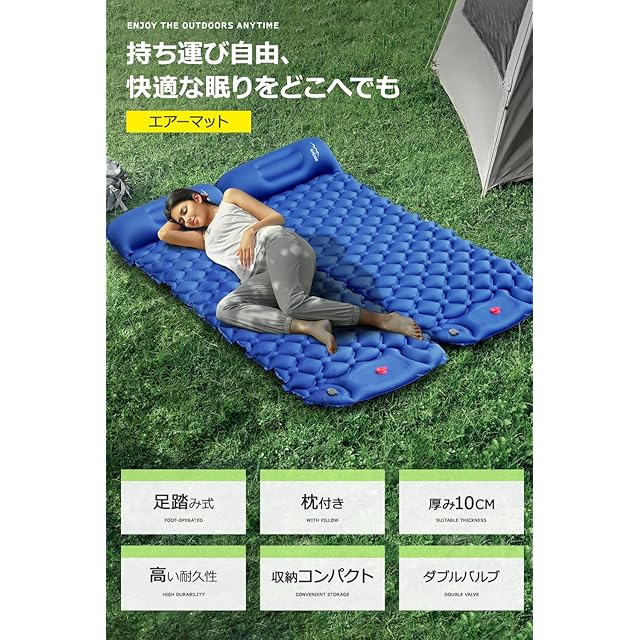 エアーマット キャンプ マット 足踏み式 【2025新開発&25秒膨らむ】 車中泊マット 枕が付き アウトドア マット 防災 マットンパクト 寝袋 R値4.0 厚手 防水防潮 災害用マット 軽量 持ち運び便利 簡単収納 収納袋付き 日本語取扱説明書