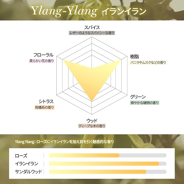 【イランイラン】KUNDALで人気の香り。ピーチ&ラズベリーの愛らしい香りで、後にローズ&ジャスミンの香りに変わるロマンチックでムーディーな香り
