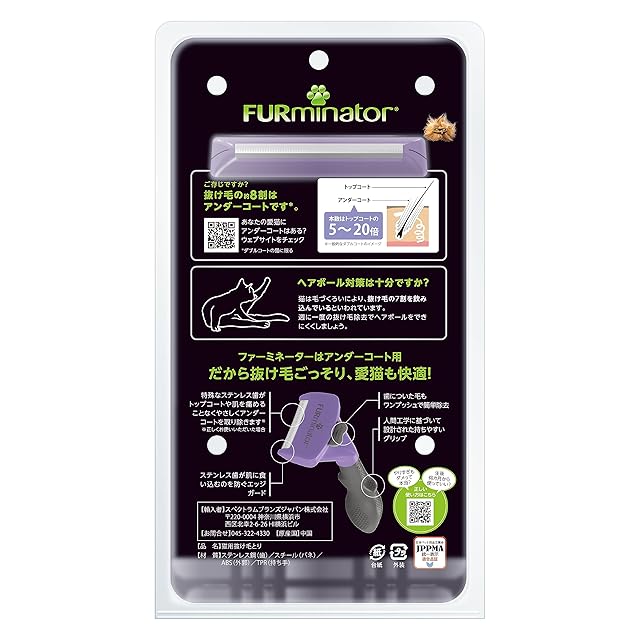 ファーミネーター 中・大型猫 長毛種用 ペット ブラシ 獣医師監修 ヘアボール(毛球症)対策 肌に優しくアンダーコート除去 ボタンを押して抜け毛が簡単に取れる グルーミングブラシ スキンケア 熱中症対策